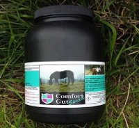 Comfort Gut is mildly alkaline, ultra small pored, very low ash, vegetal carbon, designed specifically for feeding which adsorbs (binds to) toxins in the digestive tract like excess acid and eliminates it from the horse's system in the manure.